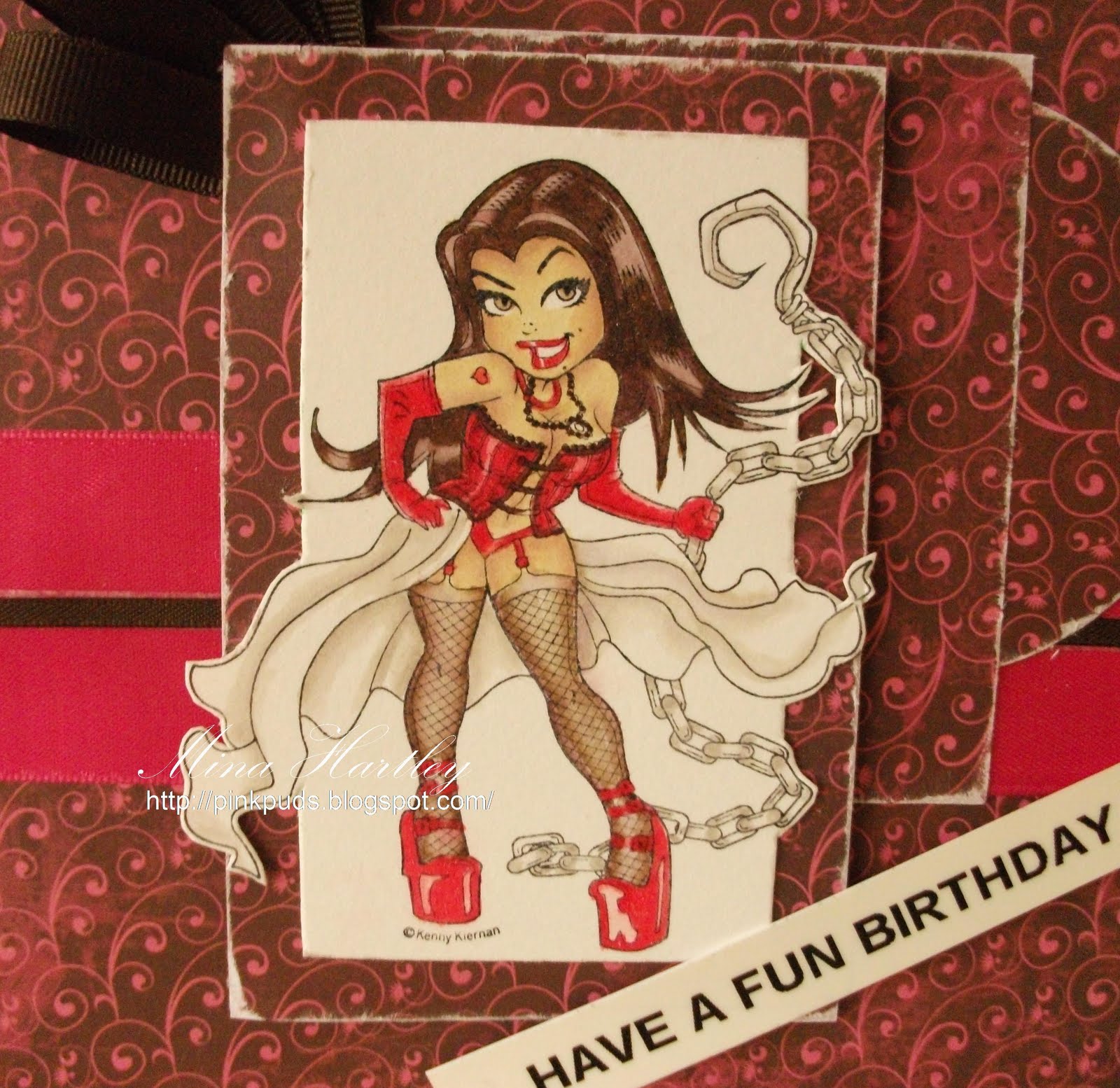Wow Mina....such a 'naughty' birthday card....super coloured...and I love what you did with 1 DP!